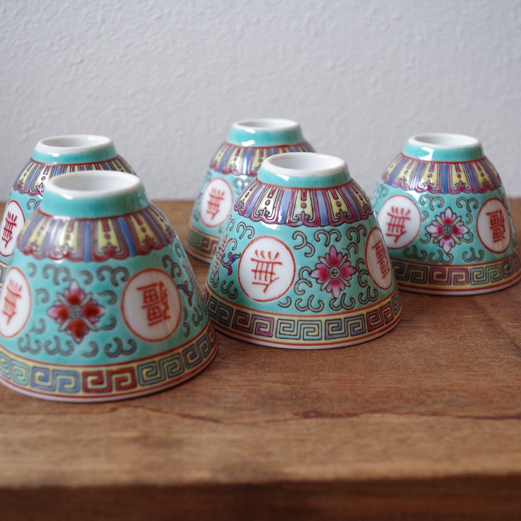 青を基調とした少し立体的でビビットなデザインと、手のひらサイズのころんと小振りな可愛い茶杯です。