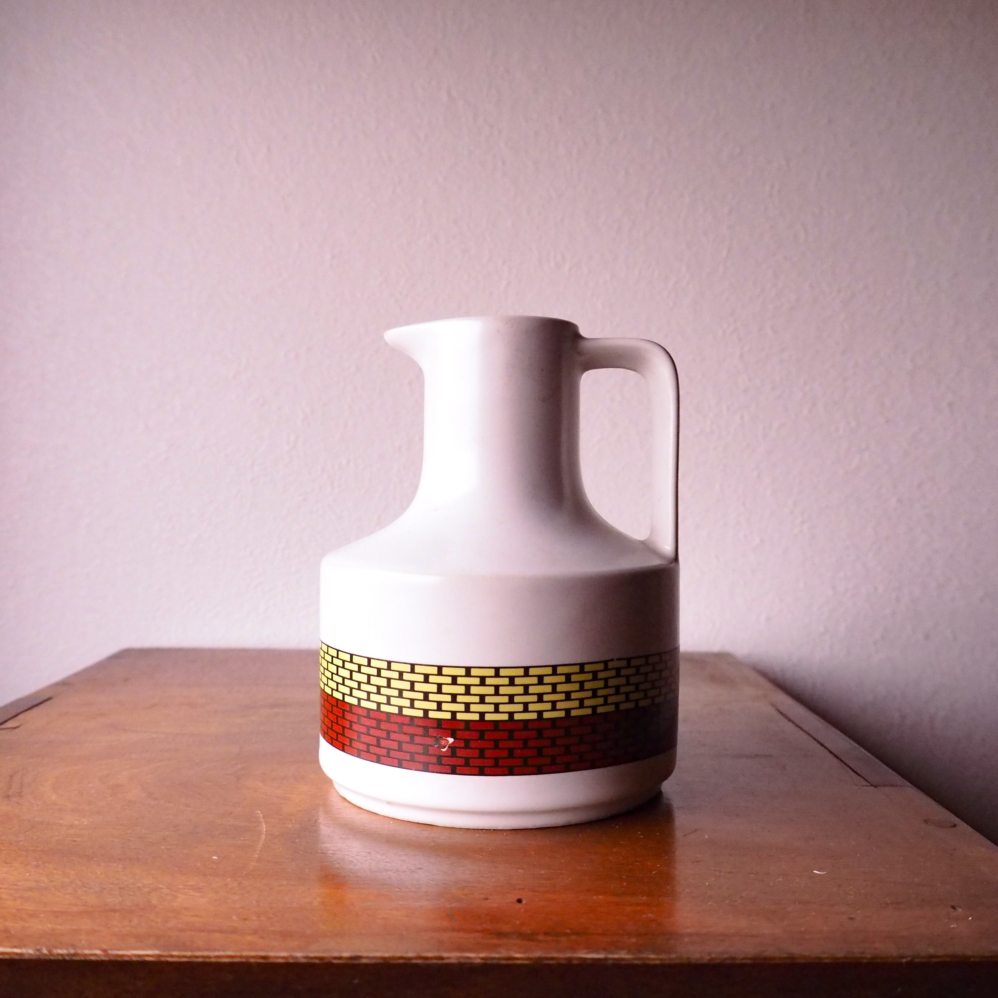 赤と黄色のレンガ模様が可愛いレトロな水差しです。