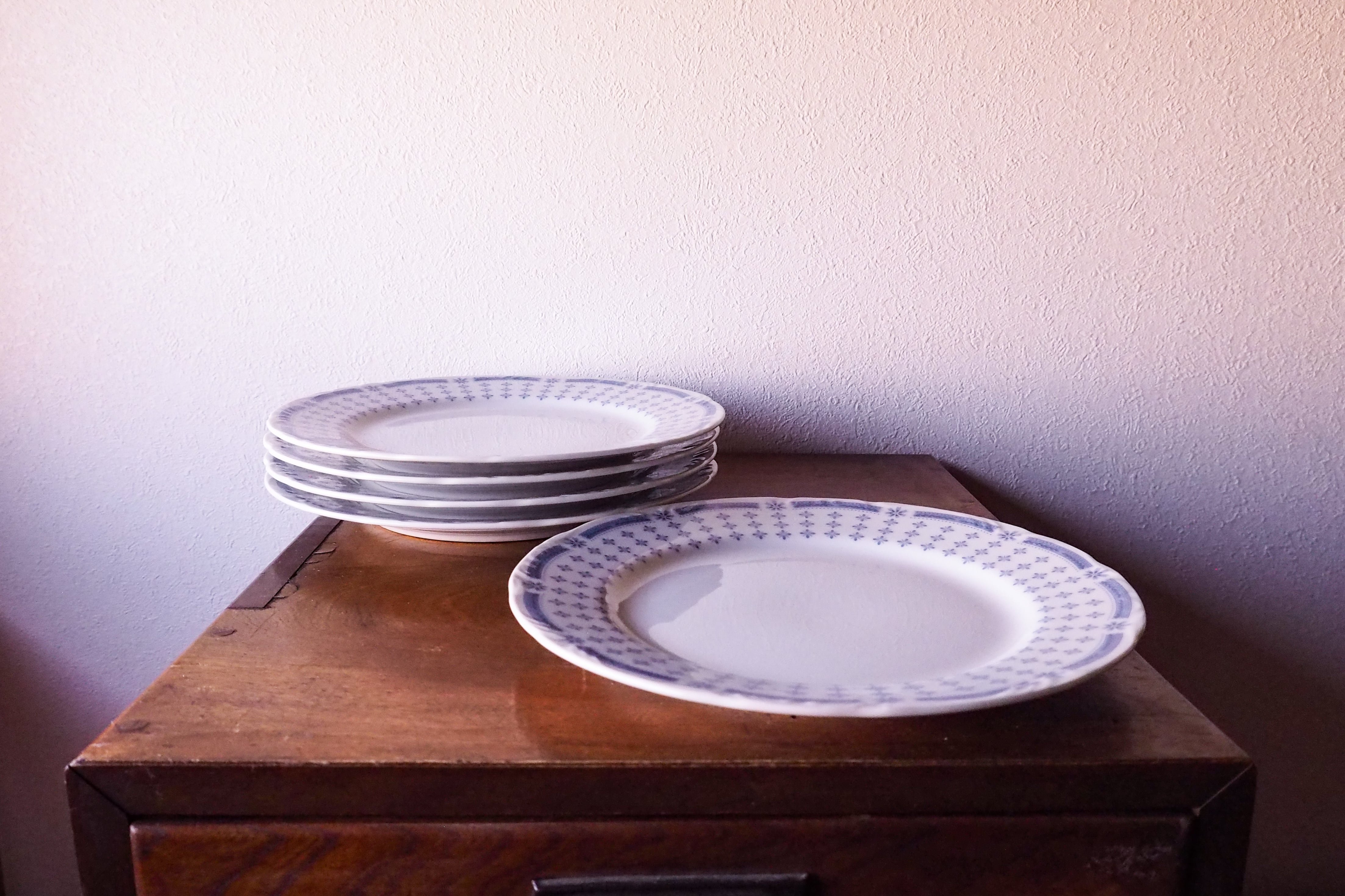 カトラリーやプレートを重ねた小傷が角度によっては見られます。