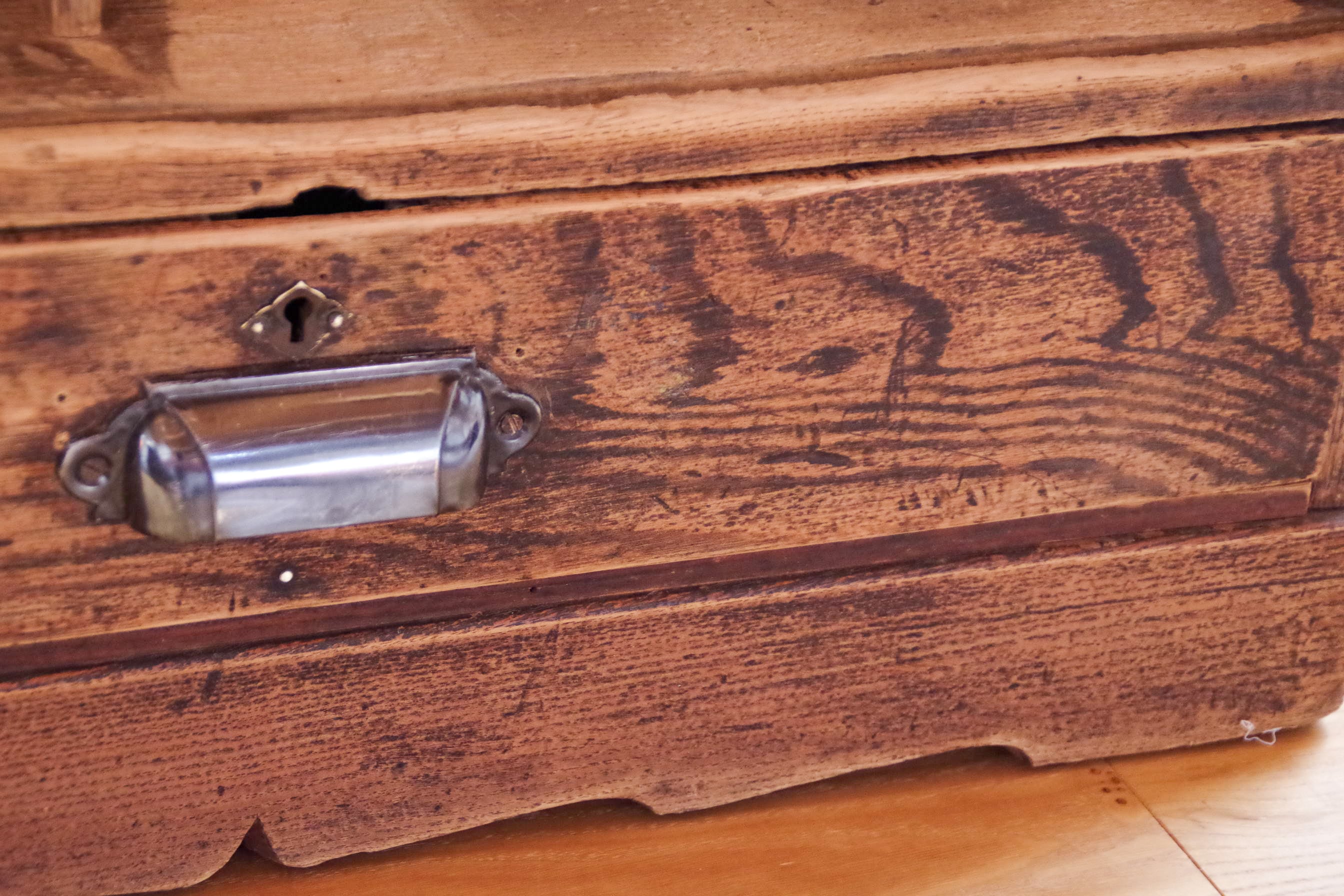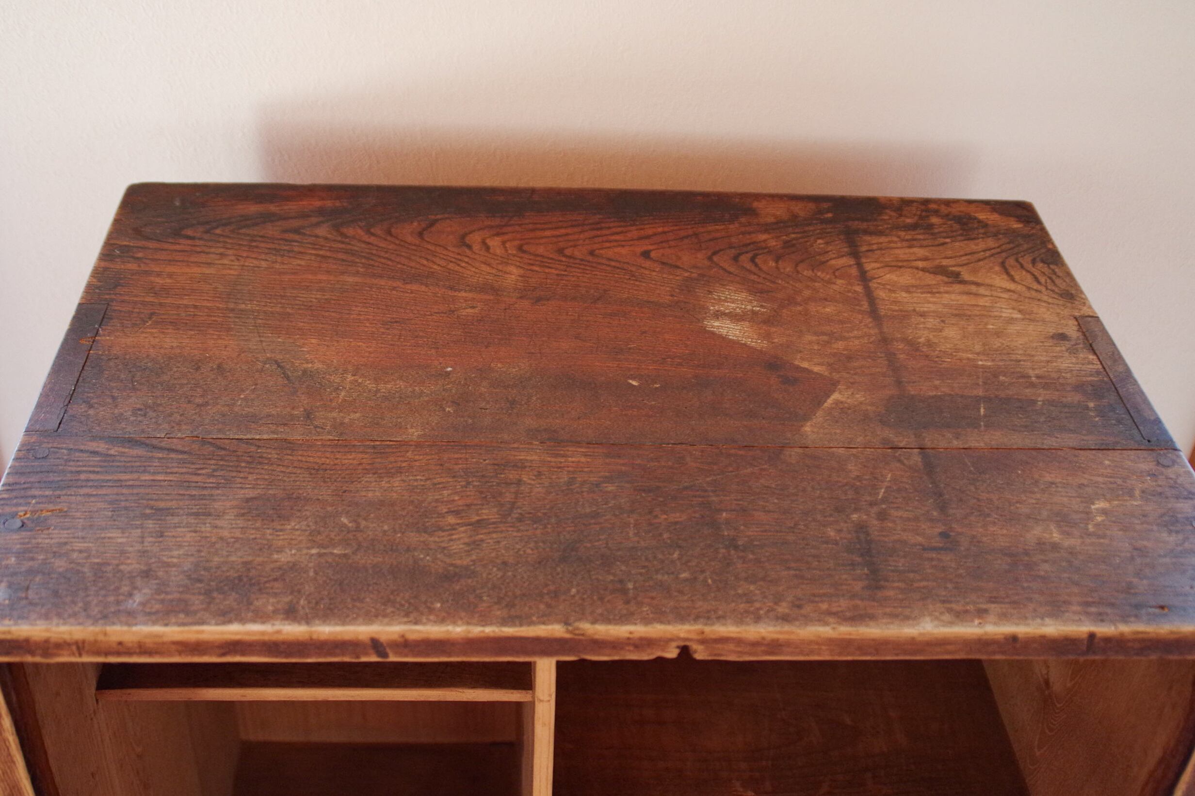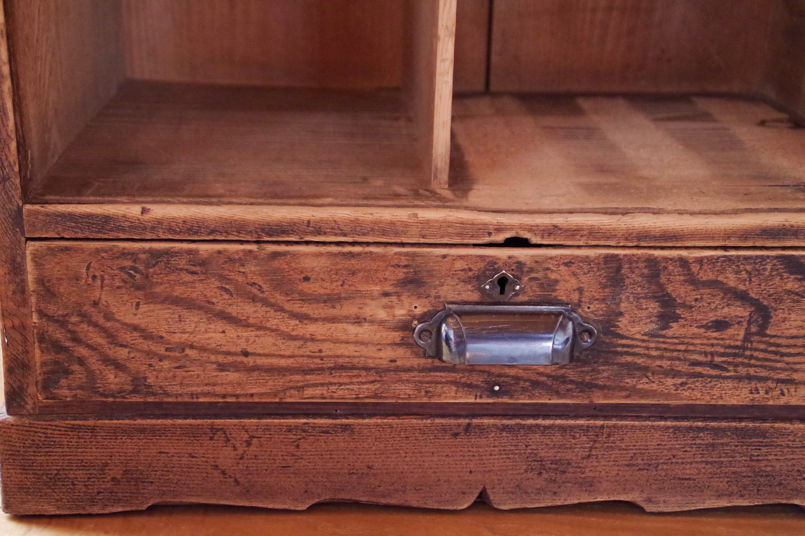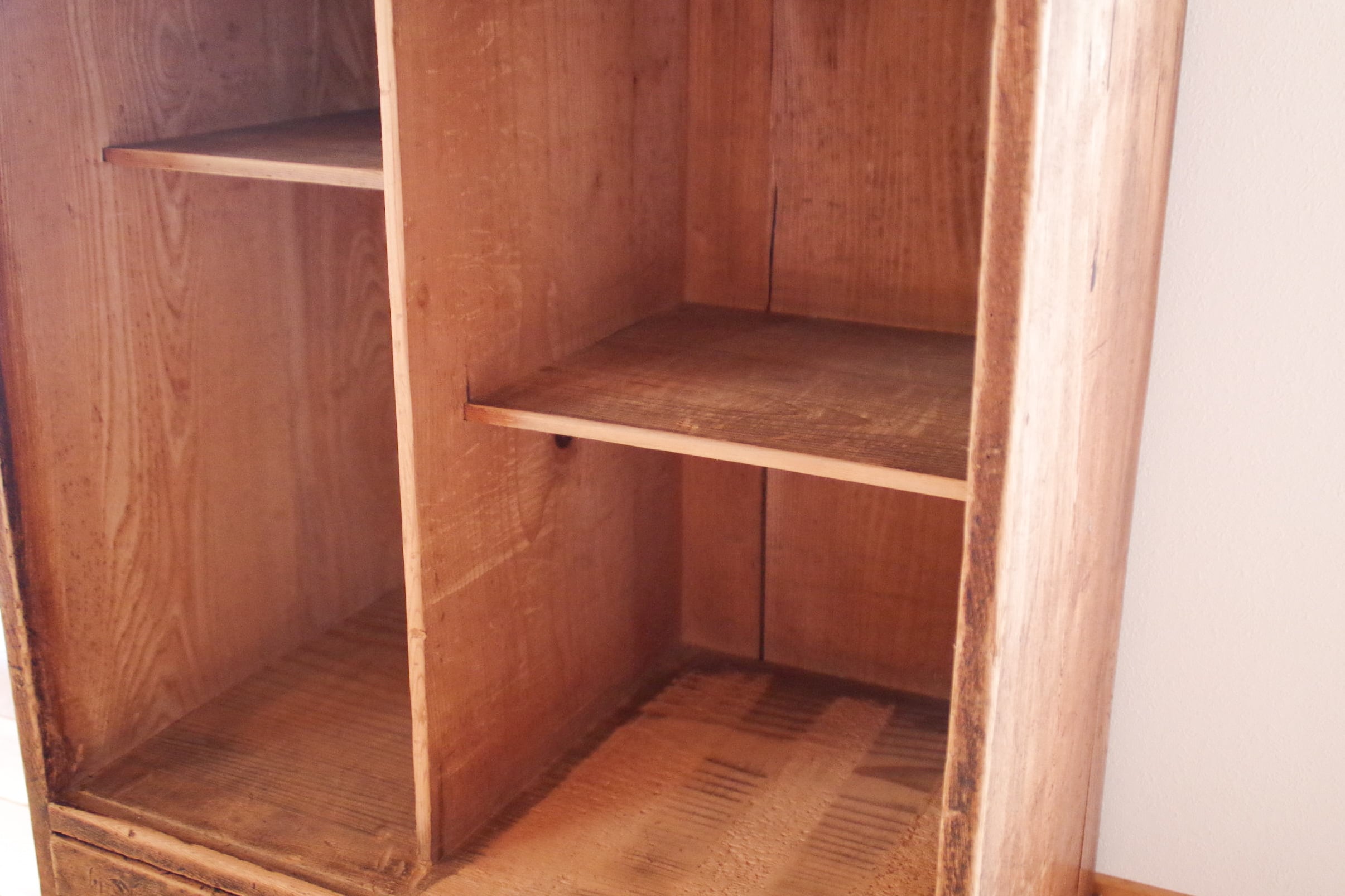 仕切り棚内部は木が毛羽立っているところが見られます。