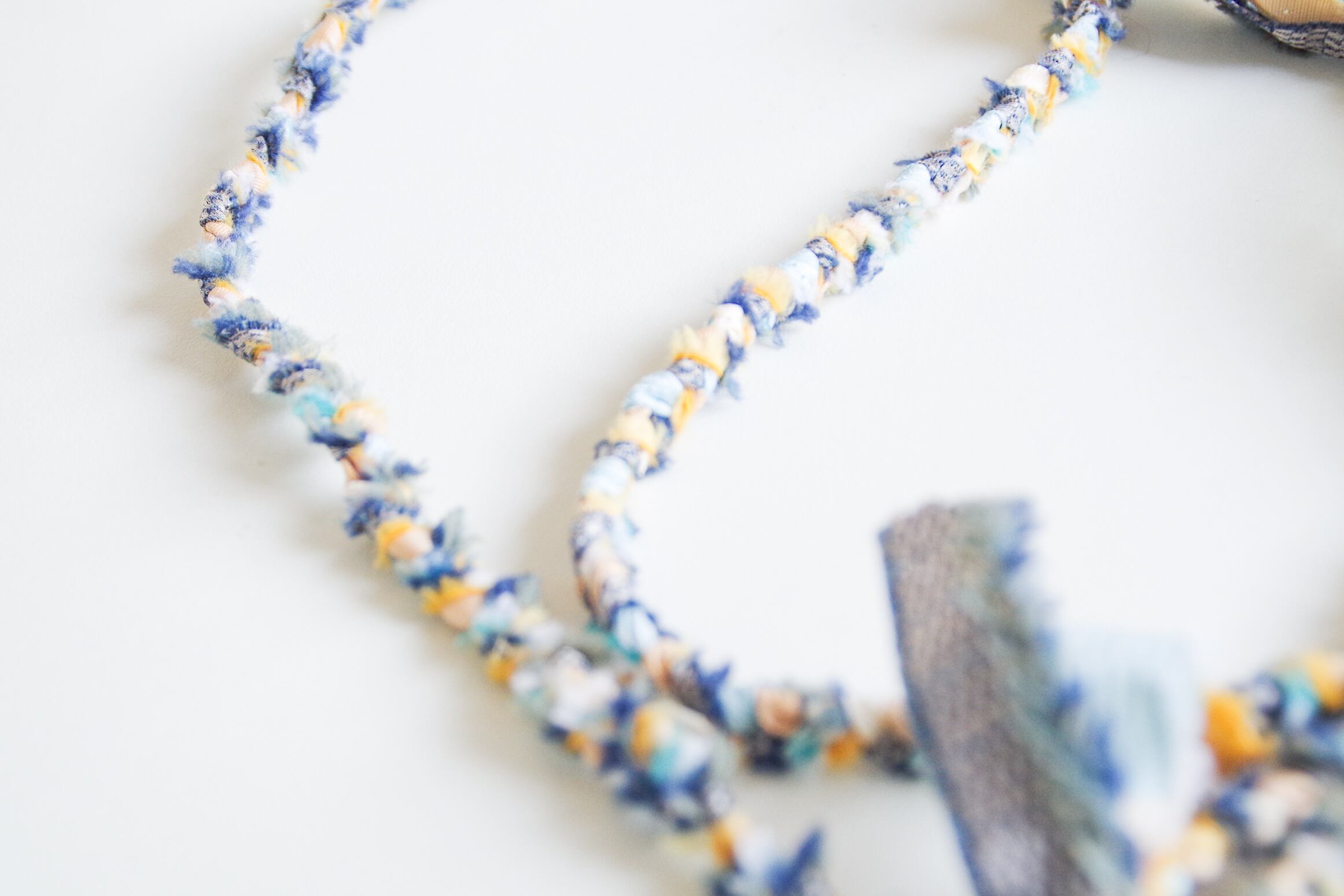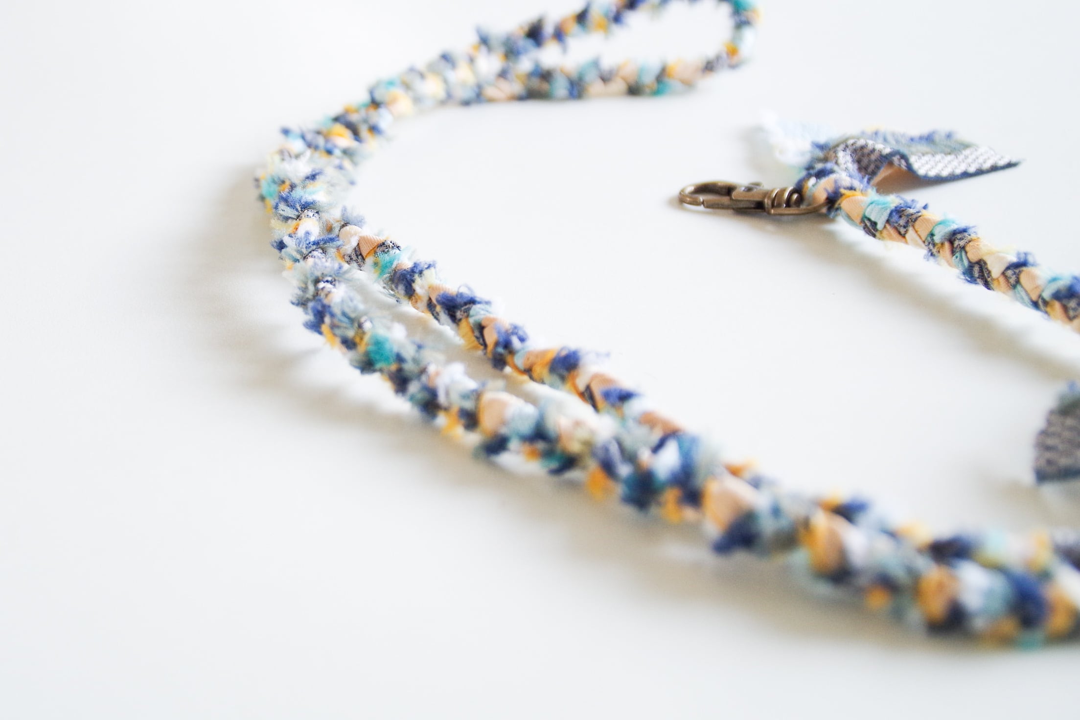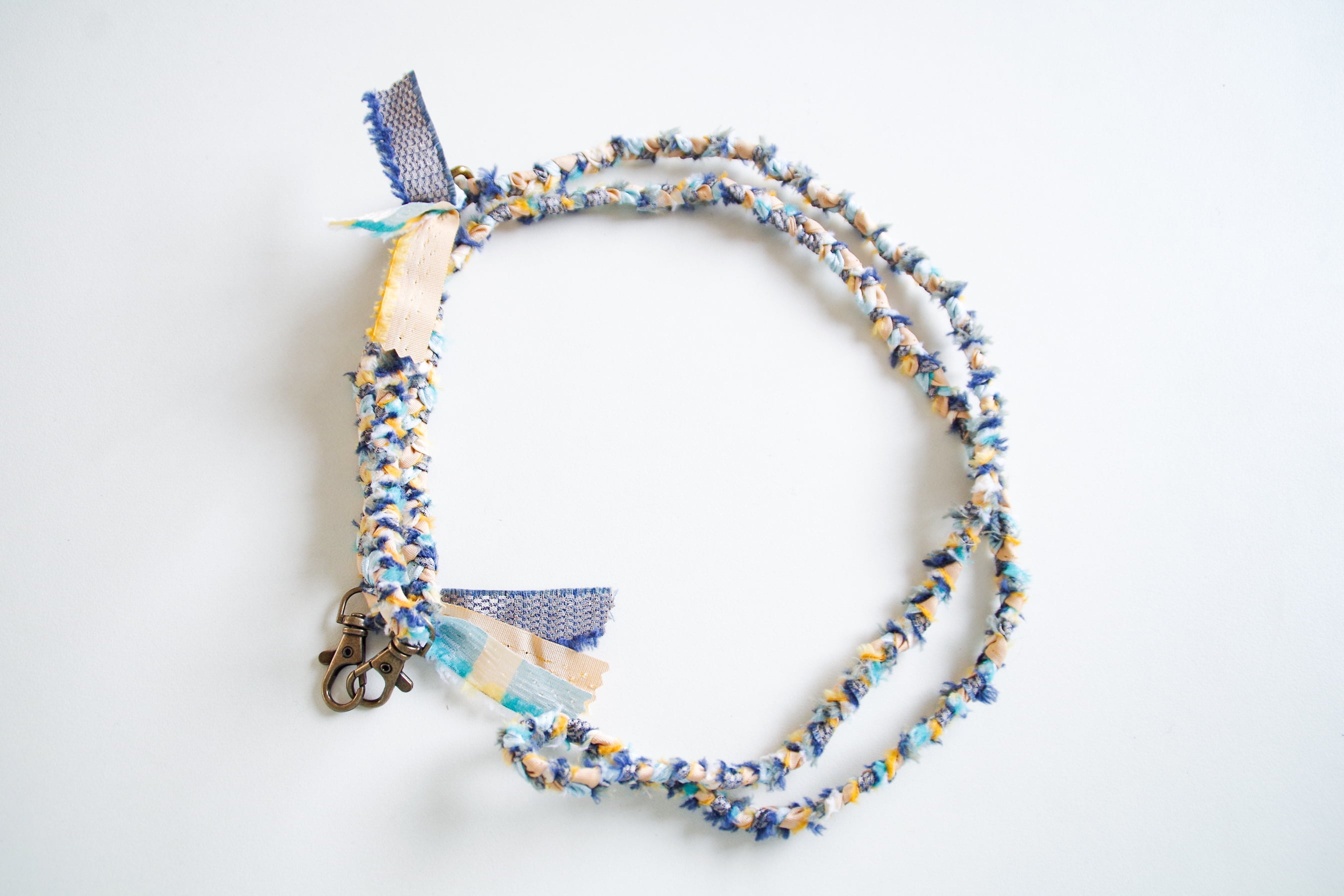捨て耳ストラップ / 青・黄色・水色(3本編み)