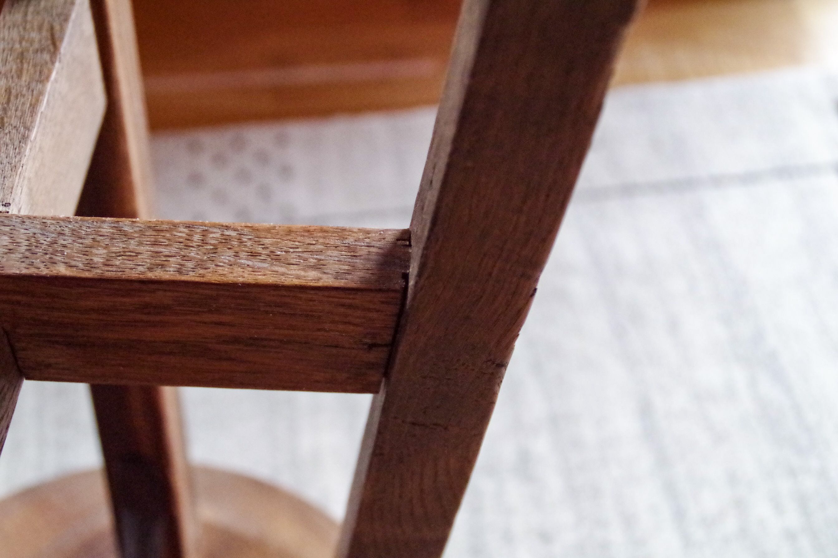 足の一部の木が裂けており、安全にお使いいただくために接着剤で固定しました。