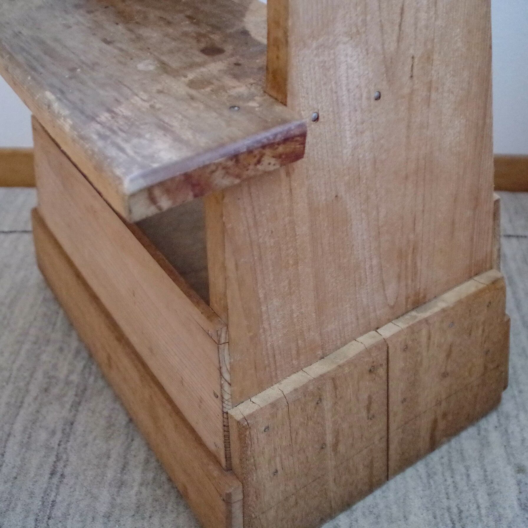 鉛筆で引かれた線などがあり、当時の手作り感が残る愛着のわく踏み台です。