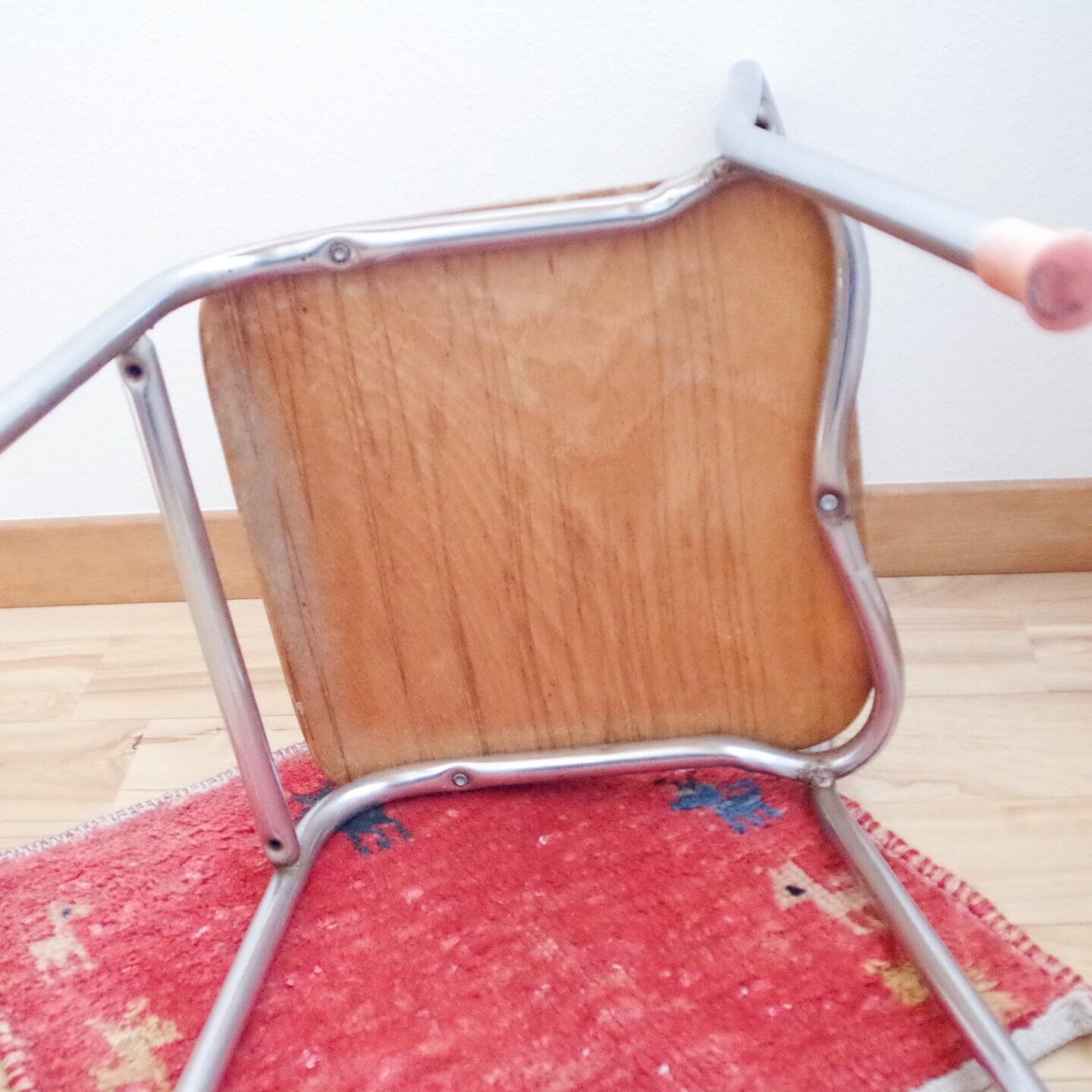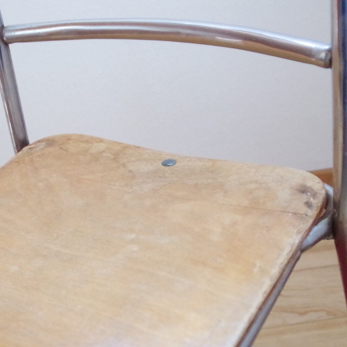 オレンジ色の脚が可愛く、色褪せした雰囲気も素敵な椅子です。