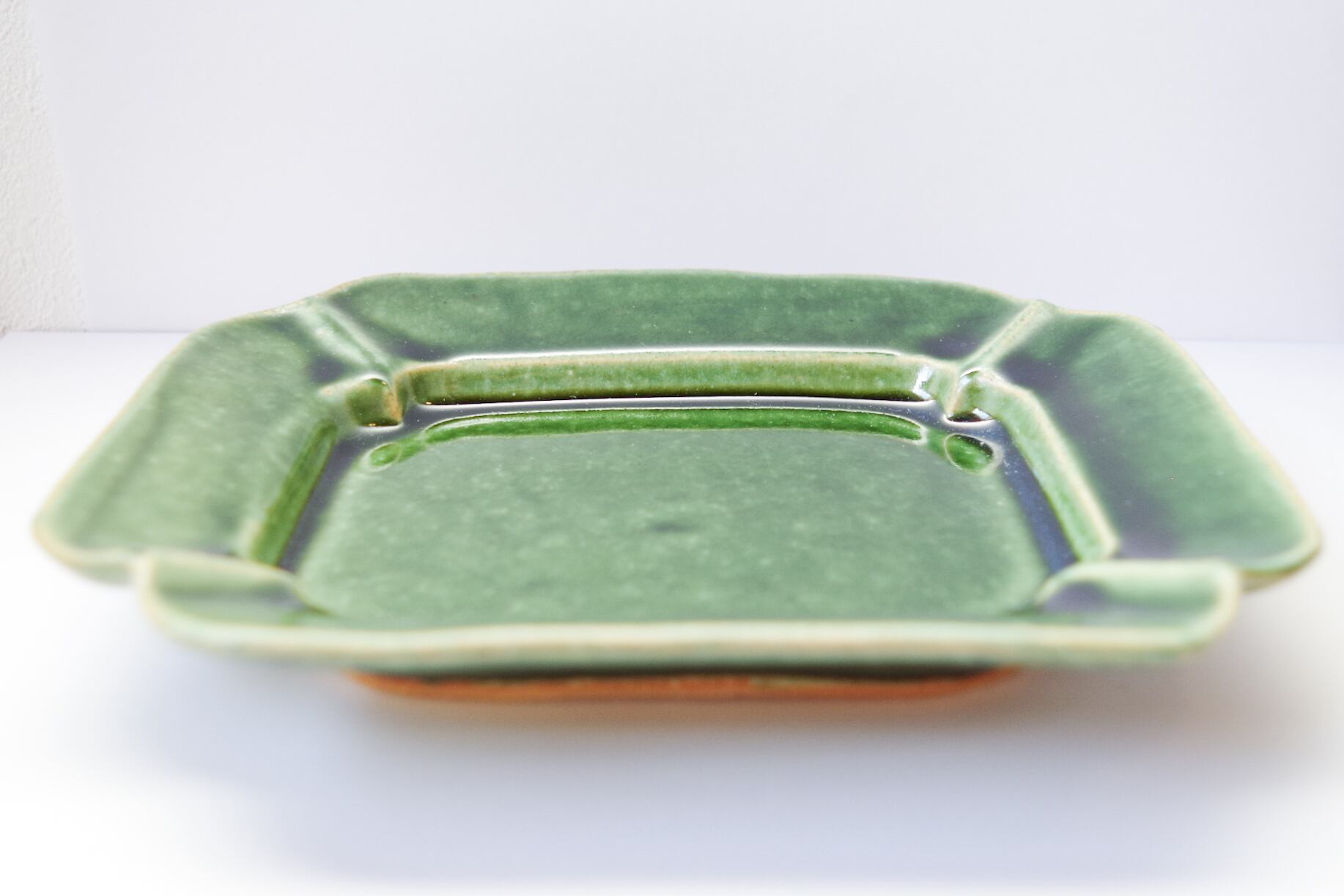 木瓜型に、「織部釉」と呼ばれる鮮やかな緑色が印象的な木瓜シリーズの中皿です。