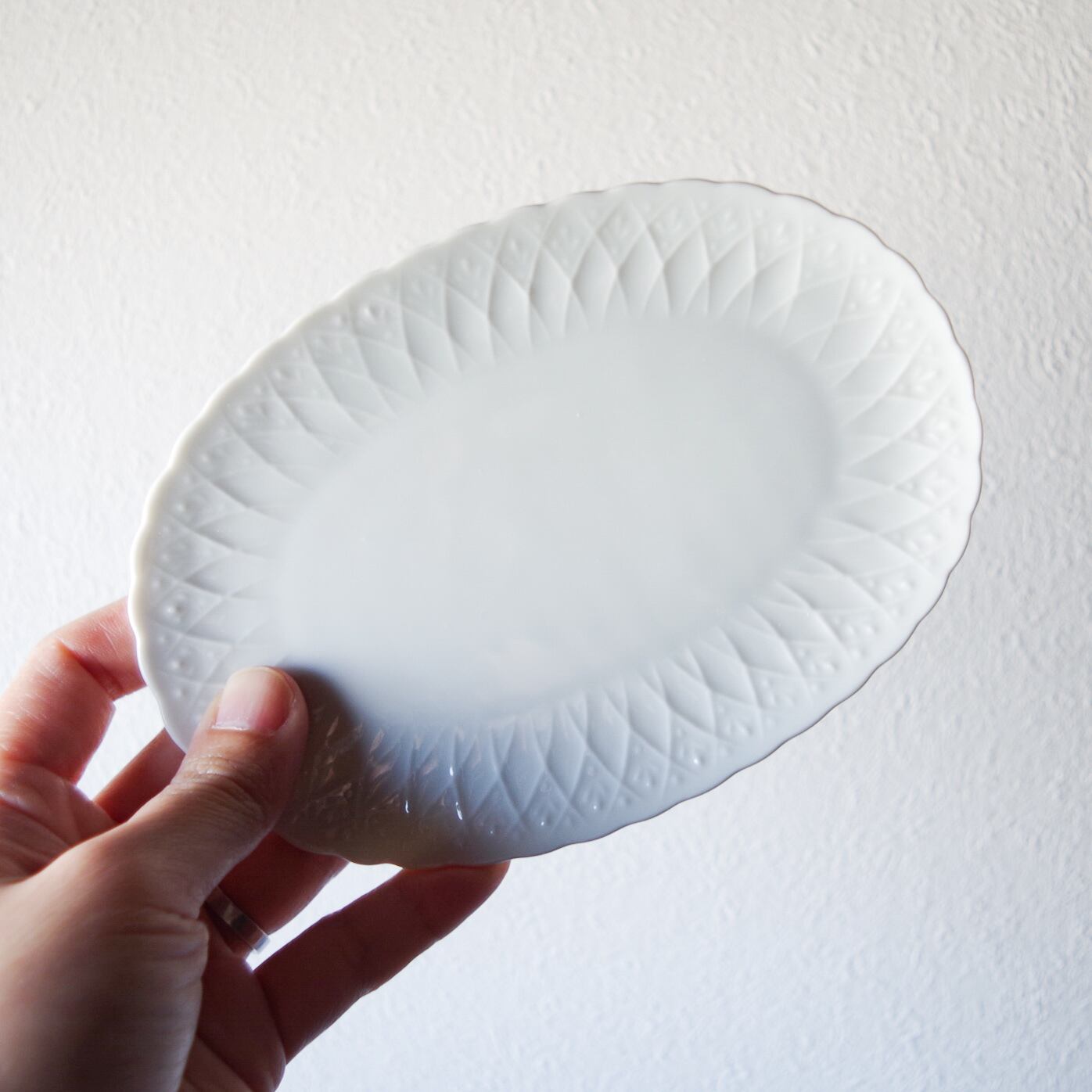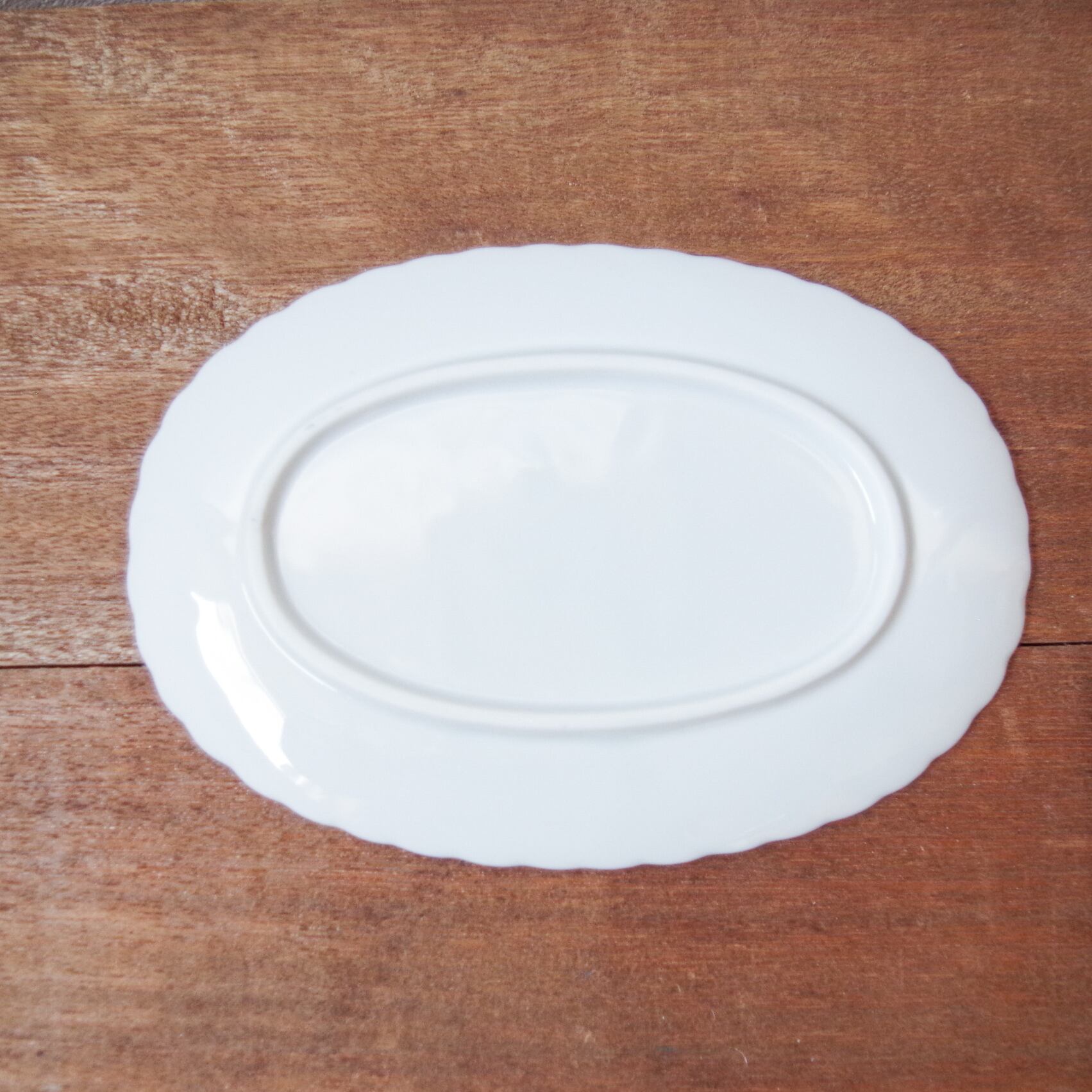 白い小さなオーバルプレートです。